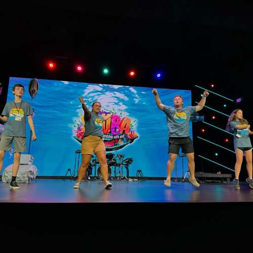 - Large Group – High-energy worship, fun games, and interactive Bible lessons that capture kids' attention and make learning about Jesus exciting.
